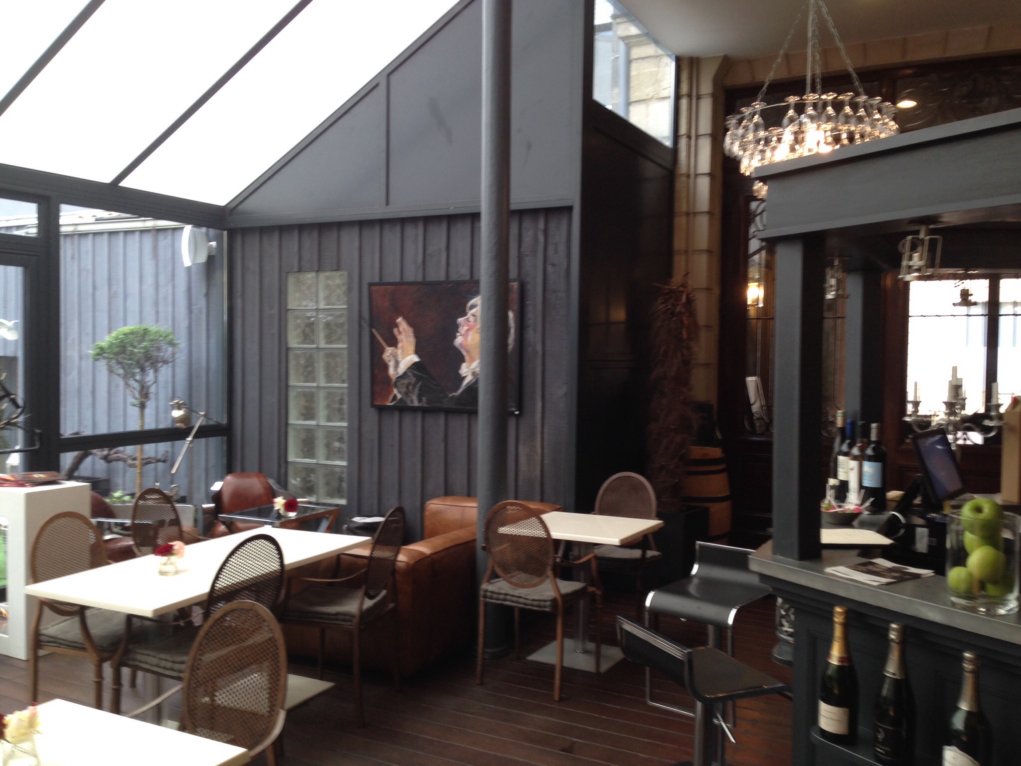 Bordeaux wines, as well as those from other French appellations, are found nearly everywhere. Not once did I have a “bad” glass of wine, though some I prefer more than others. Whether you visit a dedicated wine bar, such as the one at Le Boutique Hotel, or simply enjoy wine at a cafe, brasserie, dinner at a bistro, or bar, you will have plenty of places to sip. If you prefer cocktails, Bordeaux has several bars to suit your preference. If you’d like a dive-y spot for beer with the locals, Cafe Brun is your place; be forewarned, my American friends and I experienced stereotypically brusque (one might say rude) French service there. Want slightly more upscale? Maria Randall is a hipster (I say hipster, you say bohemian) bar with more trendy (though very sweet) cocktails. I recommend the Alfonso cocktail made with sparkling wine and berry puree. As the night progresses, a DJ plays, and part of the bar can become a makeshift dance floor. My friends and I experienced some slow service at first, but as we made an effort to socialize with the locals, we were rewarded with quite a bit of cameraderie and fun! Want to be a bit more adult? The bar at the bottom of Gabriel is quiet and has a wonderful selection of cocktails that are not unreasonably priced for a bar of that caliber. My “top shelf” recommendation, however, is Le Bar inside the Grand Hotel Bordeaux near the Place de Bourse. Its ambiance is as grand, and its service princely – you will pay handsomely for that, however (17 to 23 Euros for most cocktails and wines by the glass). Still, I had a lovely experience there and felt the experience was worth the price. I recommend their signature Kir Royale champagne cocktails, made with Moet and pearls d’saveur (flavor pearls). Another luxurious, by not quite so expensive, option is the bar at Gabriel. Gabriel houses a bar, brasserie, and high-end restaurant all in one multi-level building.