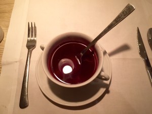 Polish food runs on the heavy side of the heavy side – pierogis, pork knuckle – well, pork everything – sausage (pork again), potatoes, cabbage, beets, and beer, for example – but at Pod Aniolami, it is so delicately prepared that it doesn’t feel heavy until you’ve finished your meal and reflected on all you’ve eaten. The menu is an extensive list of anything you could conjure, including vegetarian dishes. Selecting one dish was a daunting task. Luckily, the restaurant offers two set menus, which are not unreasonably priced and which surely could satisfy most diners. We chose the smaller option, which for 130 zloty (between 35-40 USD at the time) included two starters, a brothy beet soup, a main course choice between veal or fish, a dessert course, and a small cheese course. The portions are smaller than their a la carte counterparts on the menu – and thankfully so, as our waiter told us, “You won’t leave hungry.” I would recommend it, particularly for those with little previous experience with Polish food.
