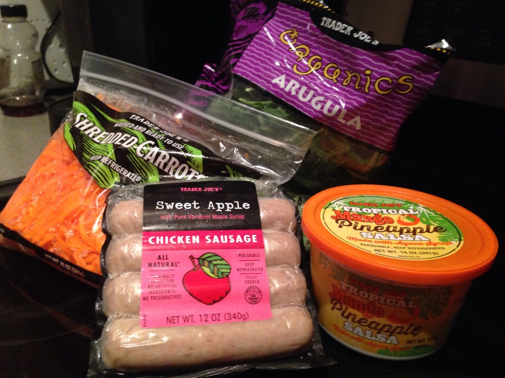 Sundried tomatoes, sprouts, and diced bell peppers are great additions to this salad, as are chopped peanuts or cashews, if you are vegetarian or just want more variety and texture. Once again, I leave you to make your own decisions. If you don’t have access to a Trader Joe’s, many of these ingredients are still accessible from other brands, or you can make a similar dressing or salsa yourself.