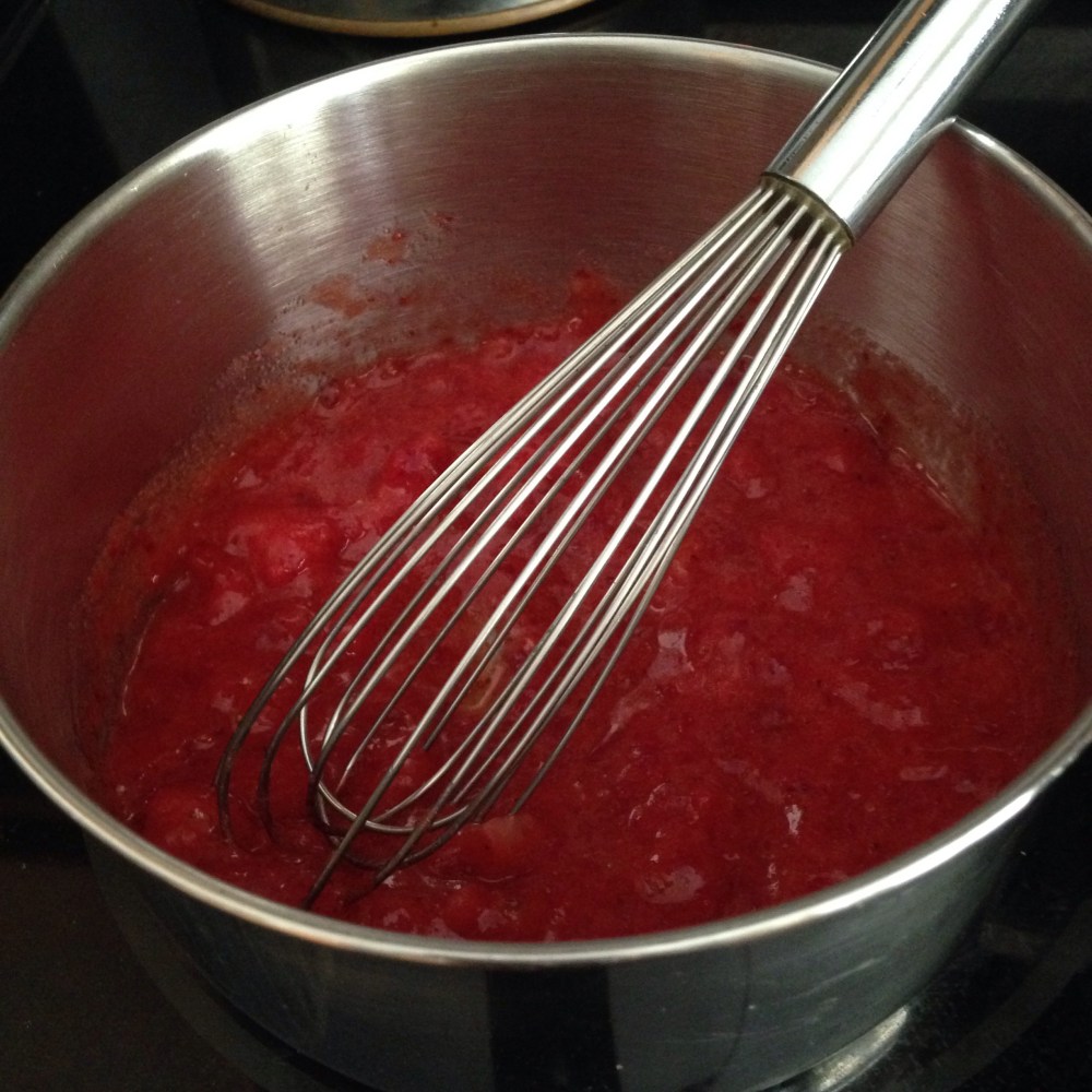 - 1 cup organic (Bio) whole strawberries OR 1/2 c. Strawberries and 1/2 c. Fresh rhubarb, diced – either brought to room temperature