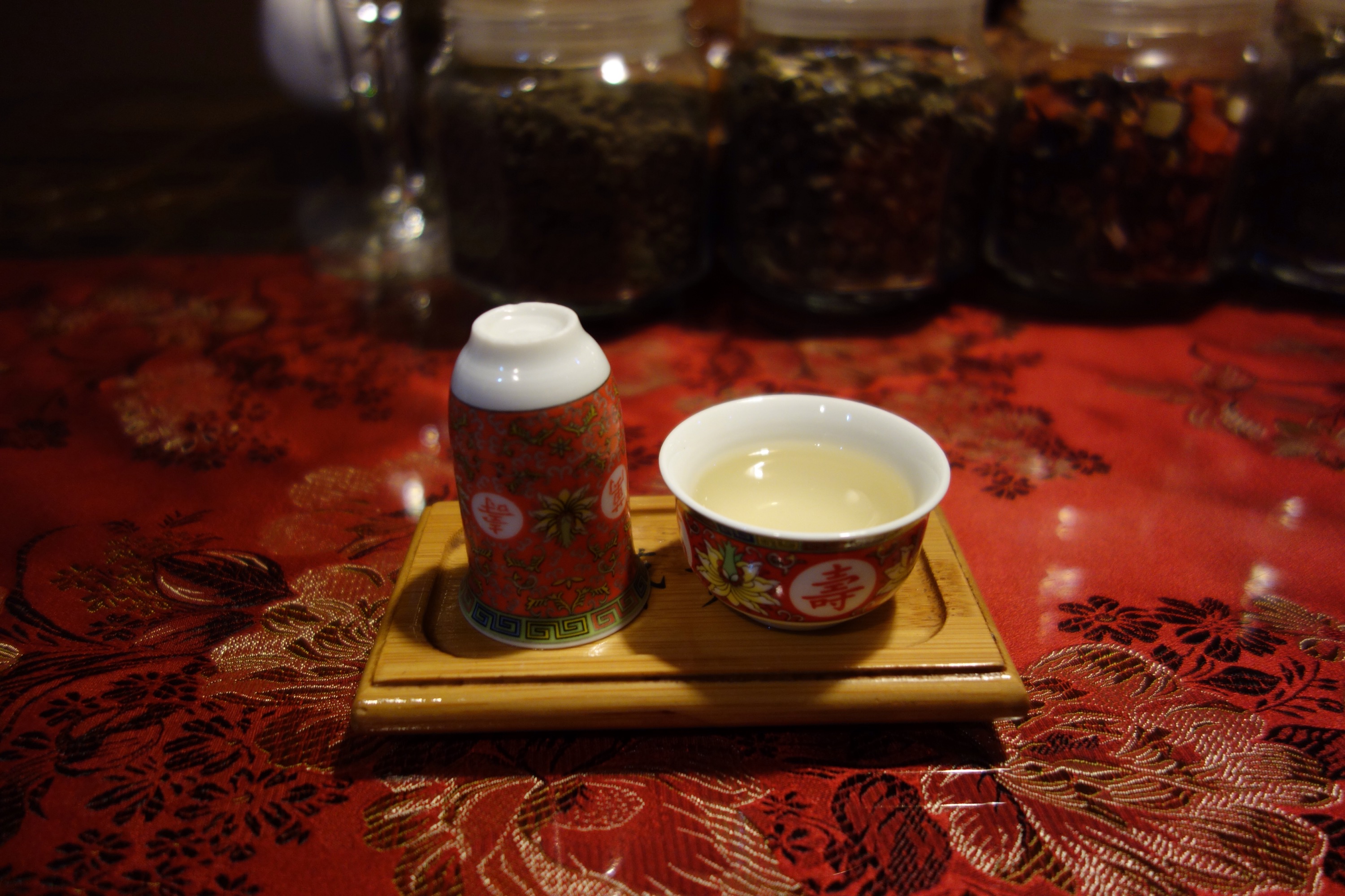On the table, there were glass jars, each one of them was filled with a different kind of tea. Once seated inside,we tried six different teas, and the woman serving us explained the health benefits of each tea. It was interesting to see how each tea was prepared and I enjoyed trying all the different varieties.