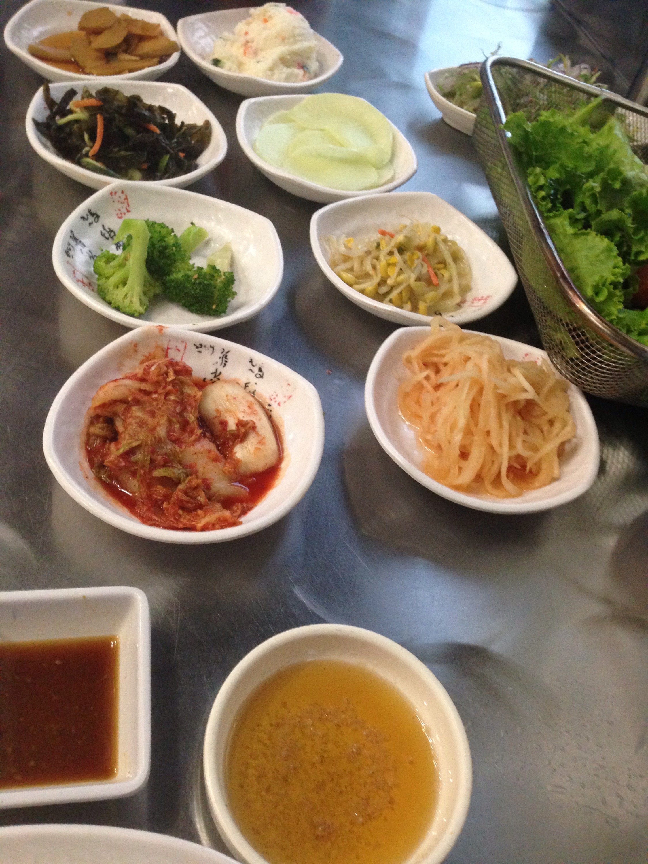 Of course, every entree comes with a vast assortment of pickled vegetables, including bean sprouts, broccoli, seaweed, cabbage, and, of course, kimchee, which takes a strong palate or acquired taste to appreciate. (Sorry, not a fan). Two soups arrive later – a flavorful, tomato-based vegetable stew and a light, soufflé-esque egg soup.