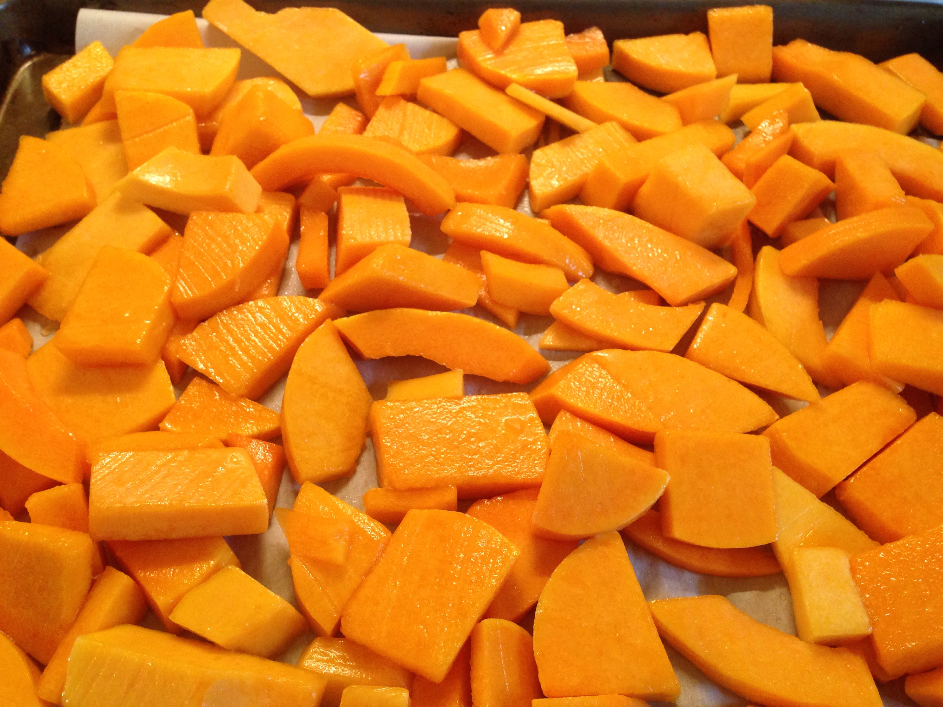 I baste and roast pre-cut, raw butternut squash with a mix of maple syrup and olive oil.