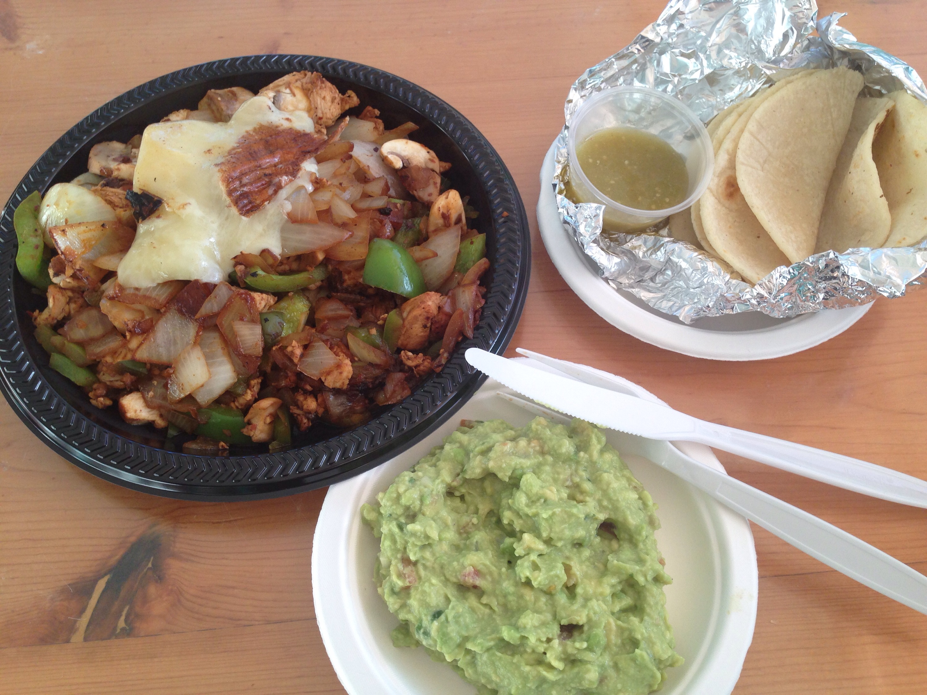 At any rate, my two selections were filling and flavorful. I ordered for my “main” the #8, alambre de pechuga. It described the dish as grilled chicken with bell pepper, onions and mushrooms, plus three tortillas. The dish was a large plate full of the meat and veggies, served atop three hidden, homemade corn tortillas. It reminded me of the amazing Turkish Iskender Kavob. I asked for it to be topped with melted cheese and ended up eating it with their killer salsa verde and cutting the tortilla into chunks, mixing it together. I so ordered the #18, guacamole. It wasn’t a stand out but solidly good; it just needed added salt. The salsa verde offered the needed saltiness and the great tang of lime. The wait was worth it, and I was more than stuffed sufficiently for the rest of the drive.