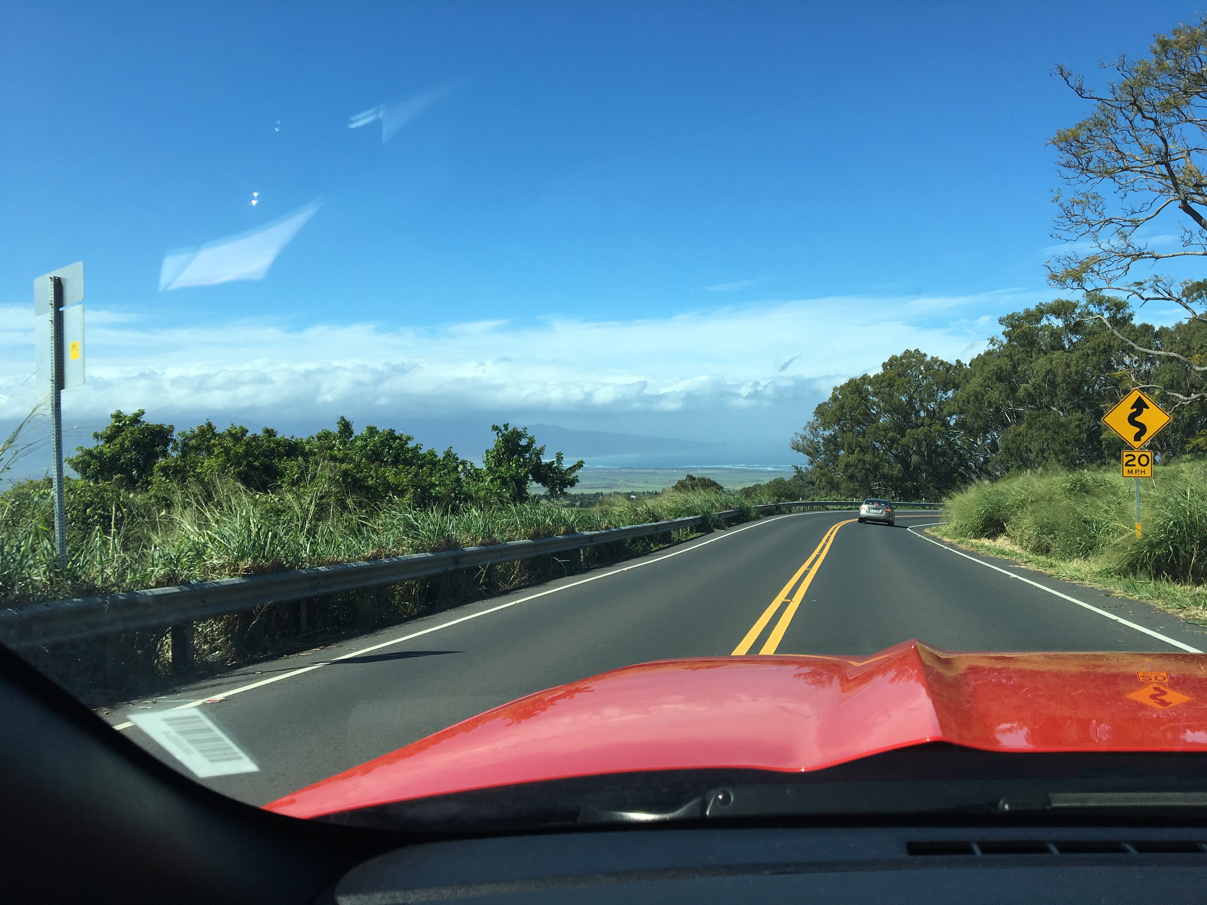 On my recent (ok not so recent as I get around to posting this, and the trip itself was sadly quick!) trip to Hawaii, I needed to quickly learn the island of Maui to prepare for an upcoming event. Having found myself driving around the scenic island in a bright red Ford Mustang, I made a slight detour to the slopes of Haleakala, a cratered volcano, and on it, to Maui Wine’s winery and tasting room. The drive was absolutely stunning, offering views of nearly 2/3 of the island. After a flight from O’ahu and this drive, it also was time to stretch my legs and try some wine.