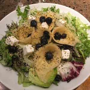 To start, I needed some healthy greens, and I opted for the server’s recommendation of the special summer salad and not the seasonal salad I originally craved. The special was comprised of mixed lettuces, celeriac, savory summer melon, blueberry, and cubes of barrel aged feta (the latter of which doesn’t have any perceptible difference from “regular” feta). I would have liked the melon to be a bit more ripe and sweet to provide more complexity and contrast of notes, but it was quite tasty with interesting textures.