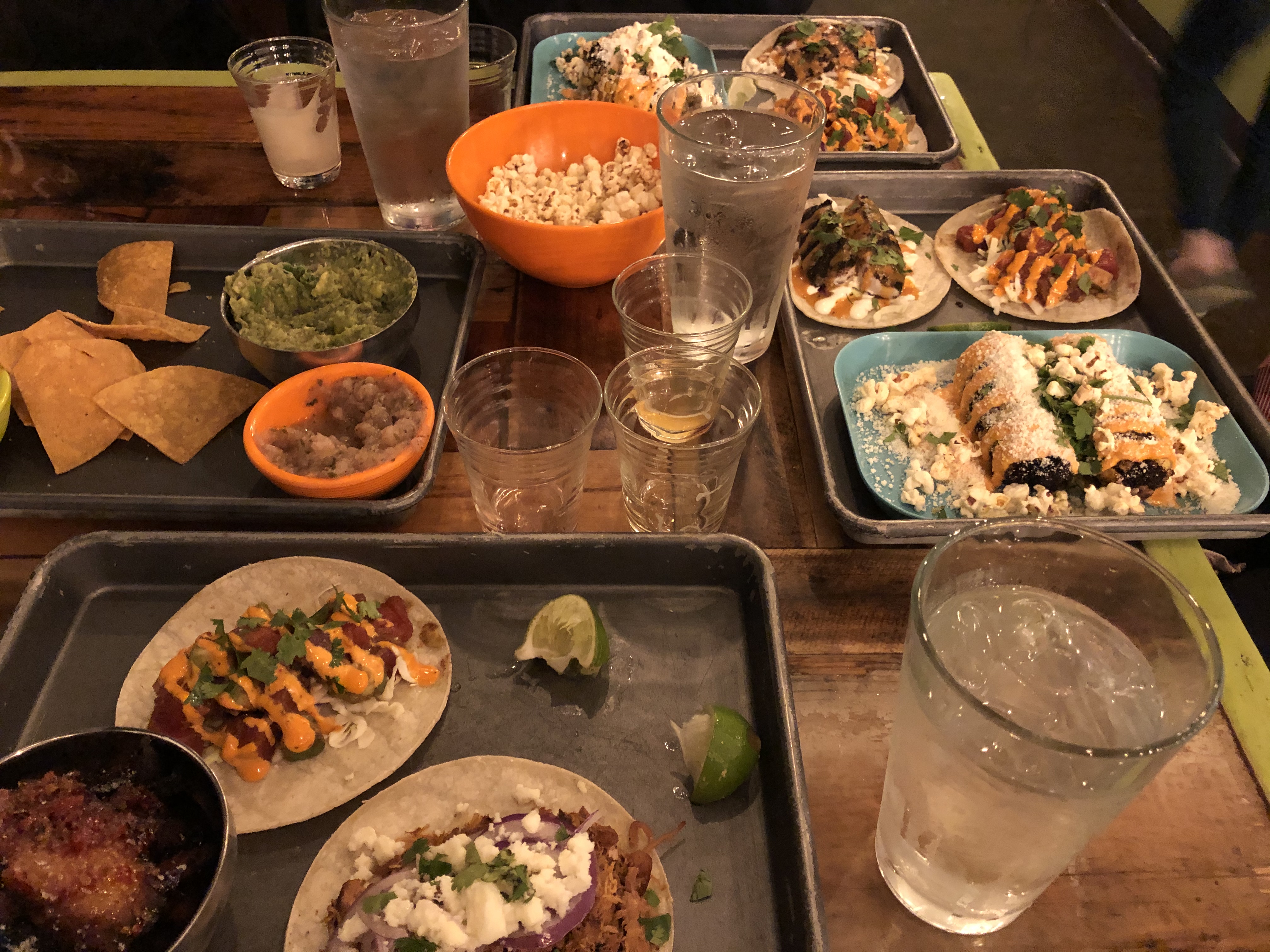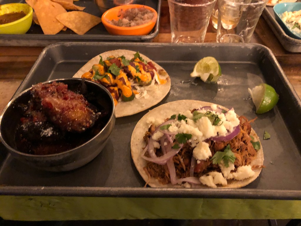 For appetizers, if you have a large group, you can’t go wrong with the Smoky, Spicy, Sweet – a tray crowded with their tortilla chips, house charred salsa, pickled pineapple salsa (the sweet), and roasted Serrano guacamole. All three were on point, and both of my groups oohed and ahhed at the consistent, unexpectedly awesome quality of each of the three. While I couldn’t pick a favorite, several of my colleagues purchased containers of the charred house salsa to go – freezing them before transporting them in their checked luggage on a flight back home several days later. I’m told the salsa pairs especially well with homemade breakfast burritos even a week later. You could also order their nachos – charmingly served as two trays in succession – supposedly to prevent soggy nachos in the typical pile – but it’s so much food, we never had the stomachs to try it, when there were so many other fantastic options. Maybe some day in the future!