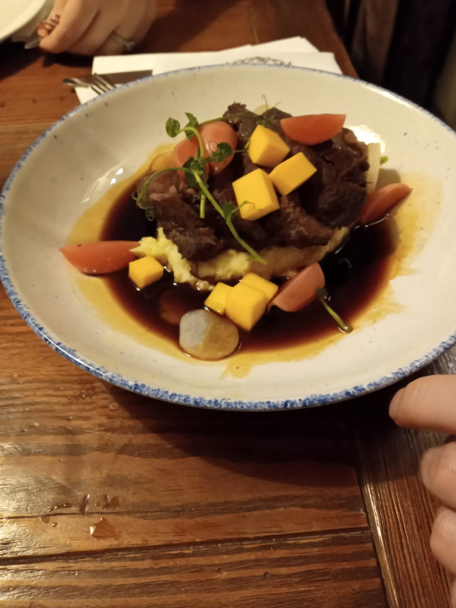 Onto the main courses. Our group ordered several different entrees (one per person) – notably their most well-known specialty, the roast duck with red cabbage and fluffy potato puree, and the Golanka (pork knuckle). The pork spare ribs and beef cheeks also made an appearance, with a deep, rich sauce and potato puree. I ordered the duck, and it was incredibly flavorful, with perfect crispy skin. While I tend to like my duck to be cooked to medium or medium rare if possible, Stary Dom’s is roasted and fairly well done, yet it retained its moisture and flavor.